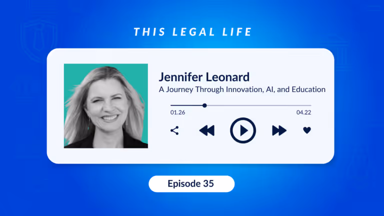 Season 2, Episode 35 In this episode of This Legal Life, host Ben Chiriboga engages with Jen Leonard, founder of Creative Lawyers and former Chief Innovation Officer at Penn Carey Law. The conversation spans Jen's dynamic career journey, from her roots as a litigator to her current role driving change in the legal profession through innovation and education.